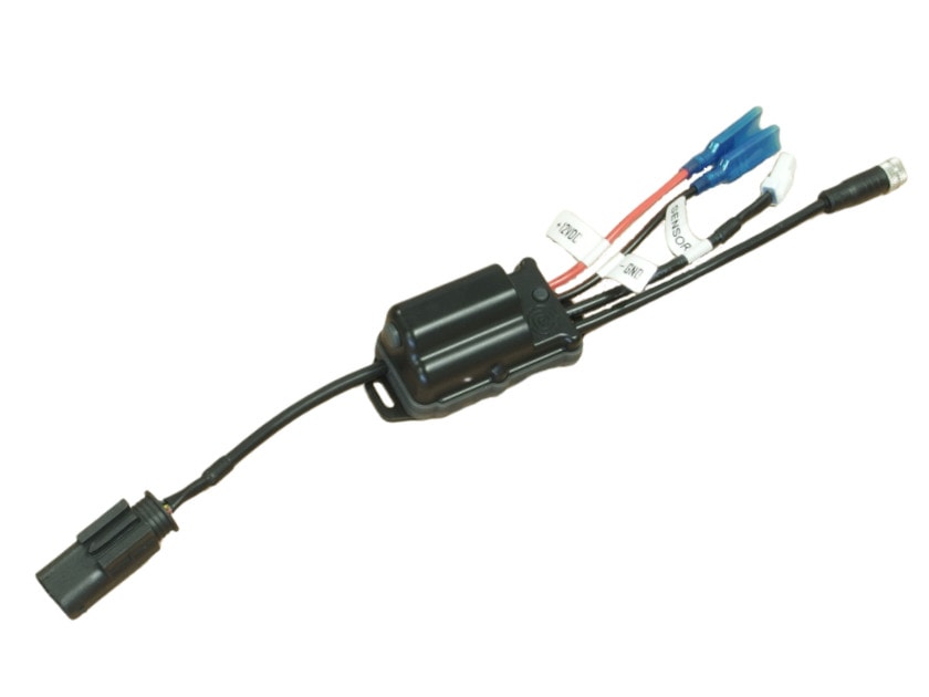 Die BMW Control Buttons werden einfach über den E-Gasgriff montiert und dann über eine Kabelverbindung mit dem BMW Control Hub verbunden.