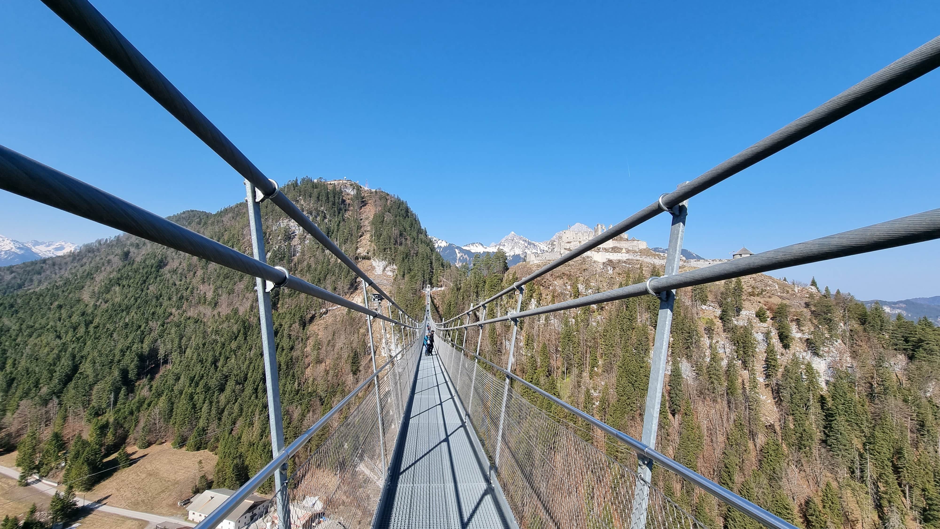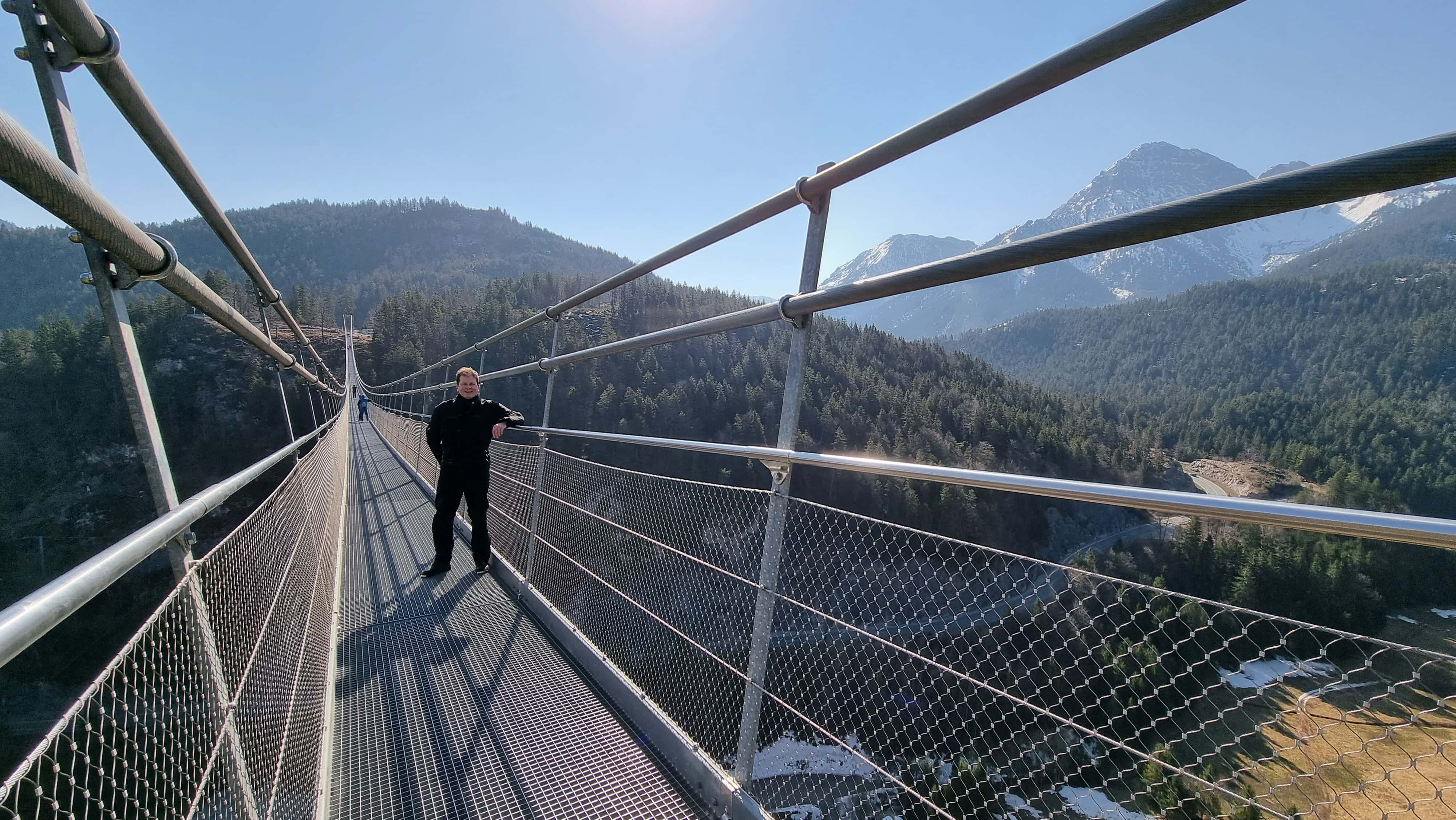 Es ist schon eine sehr merkwürdiges Gefühl, auf der schwingenden Hängebrücke über dem Abgrund zu stehen, aber definitiv ein geiles Erlebnis.