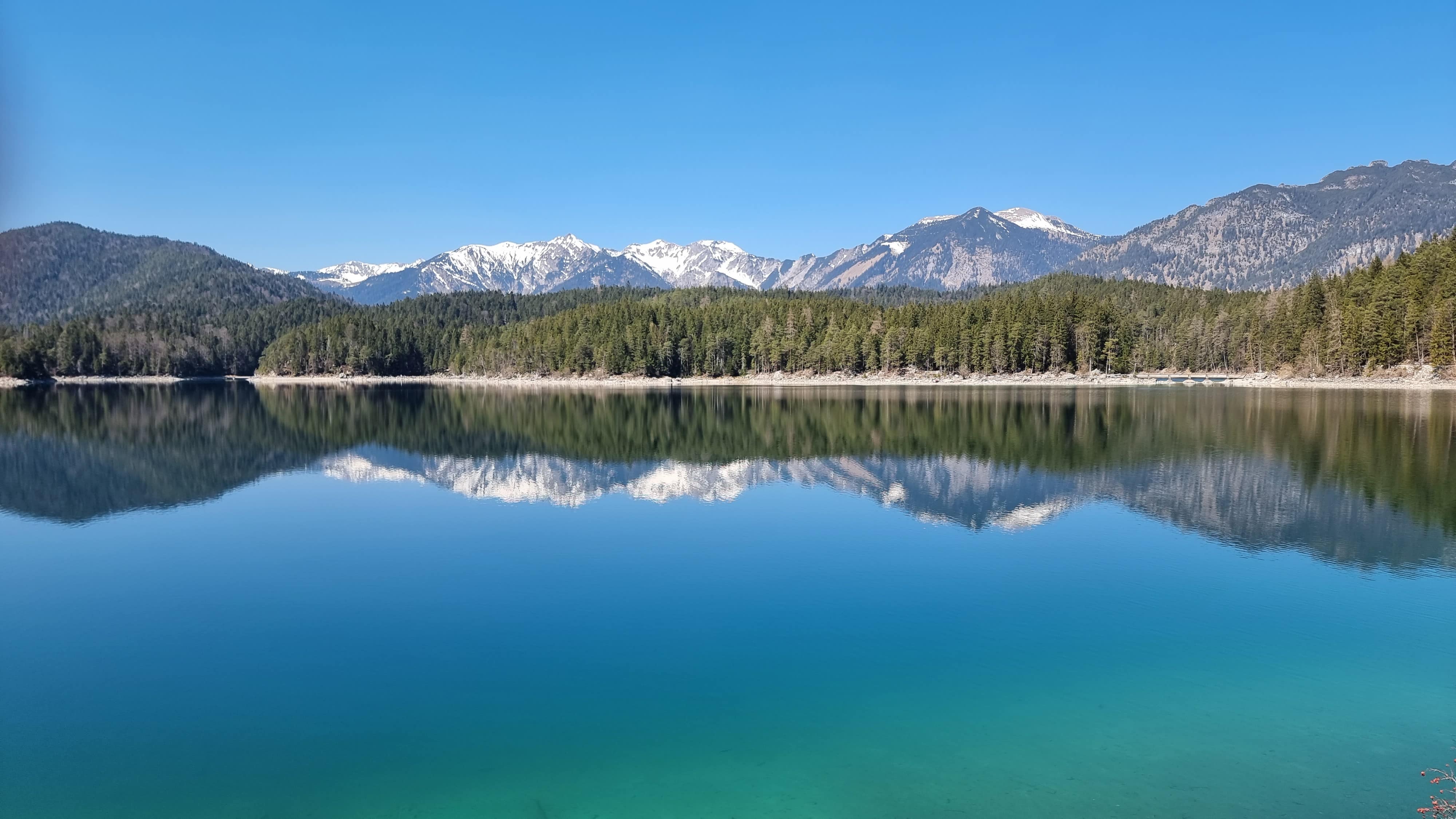 Da ein See nicht reicht, stoppe ich noch am Eibsee, wo sich auch die deutsche Zugspitzbahn befindet.