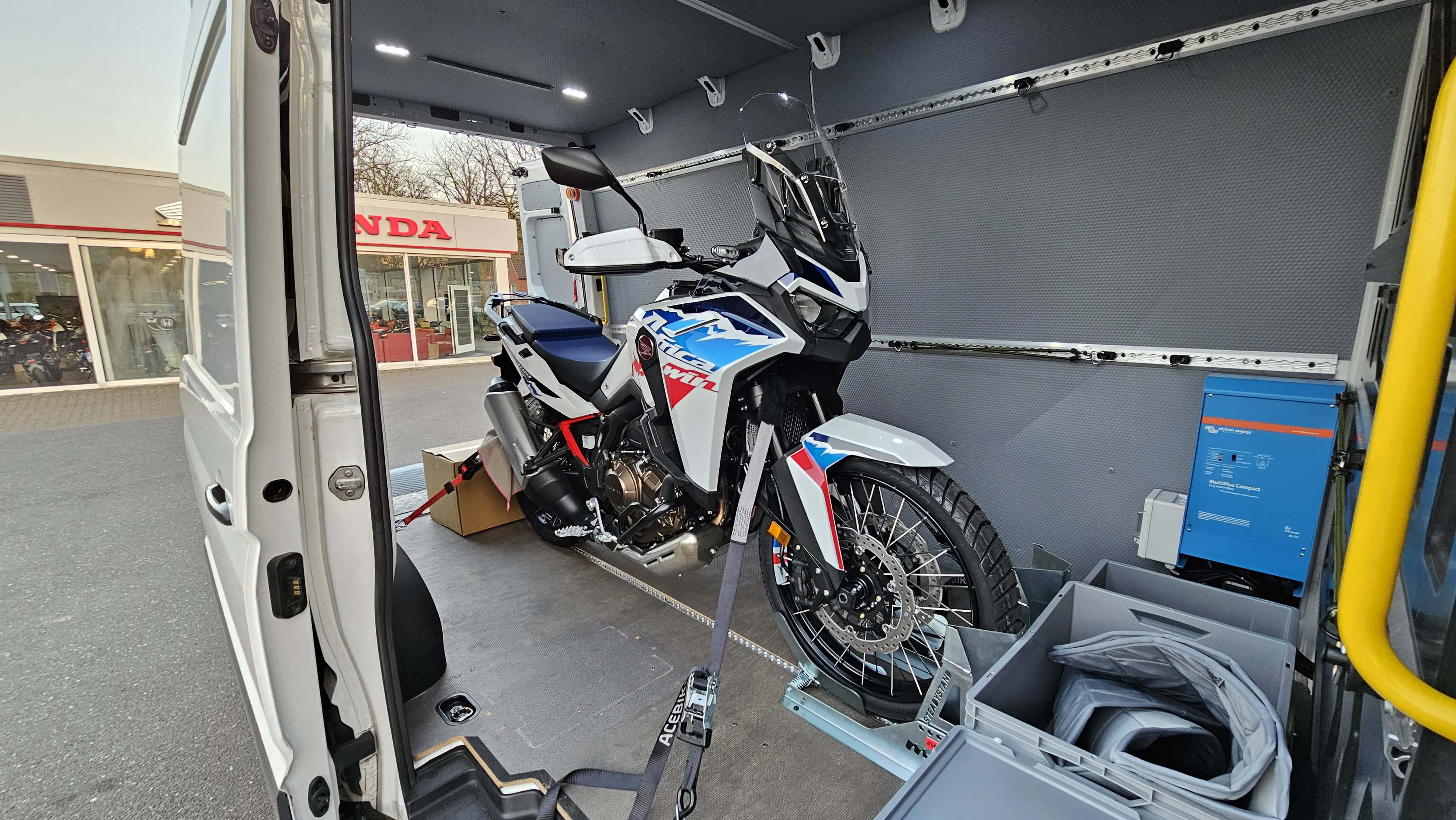 Die Honda Africa Twin ES 2025 ist endlich da: Am 07.03.2025 konnte ich meine neue Maschine beim Händler Honda Händler Petrick in Hamburg Stellingen abholen. In diesem Beitrag teile ich meine ersten Eindrücke, Details und Infos zur Ausstattung.