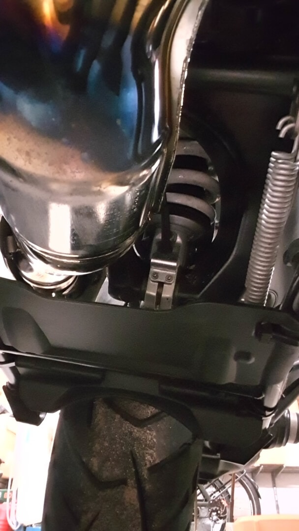 Die R1250GS Adventure hat ab Werk nun am Mittelständer einen Schutz, der die hintere ESA Einheit vor Verschmutzungen besser schützt und deutlich besser Wasserverwirbelungen durch das Hinterrad reduziert. Dieser Schutz ist auch für die R1200GS Adventure passend und wurde von mir montiert.