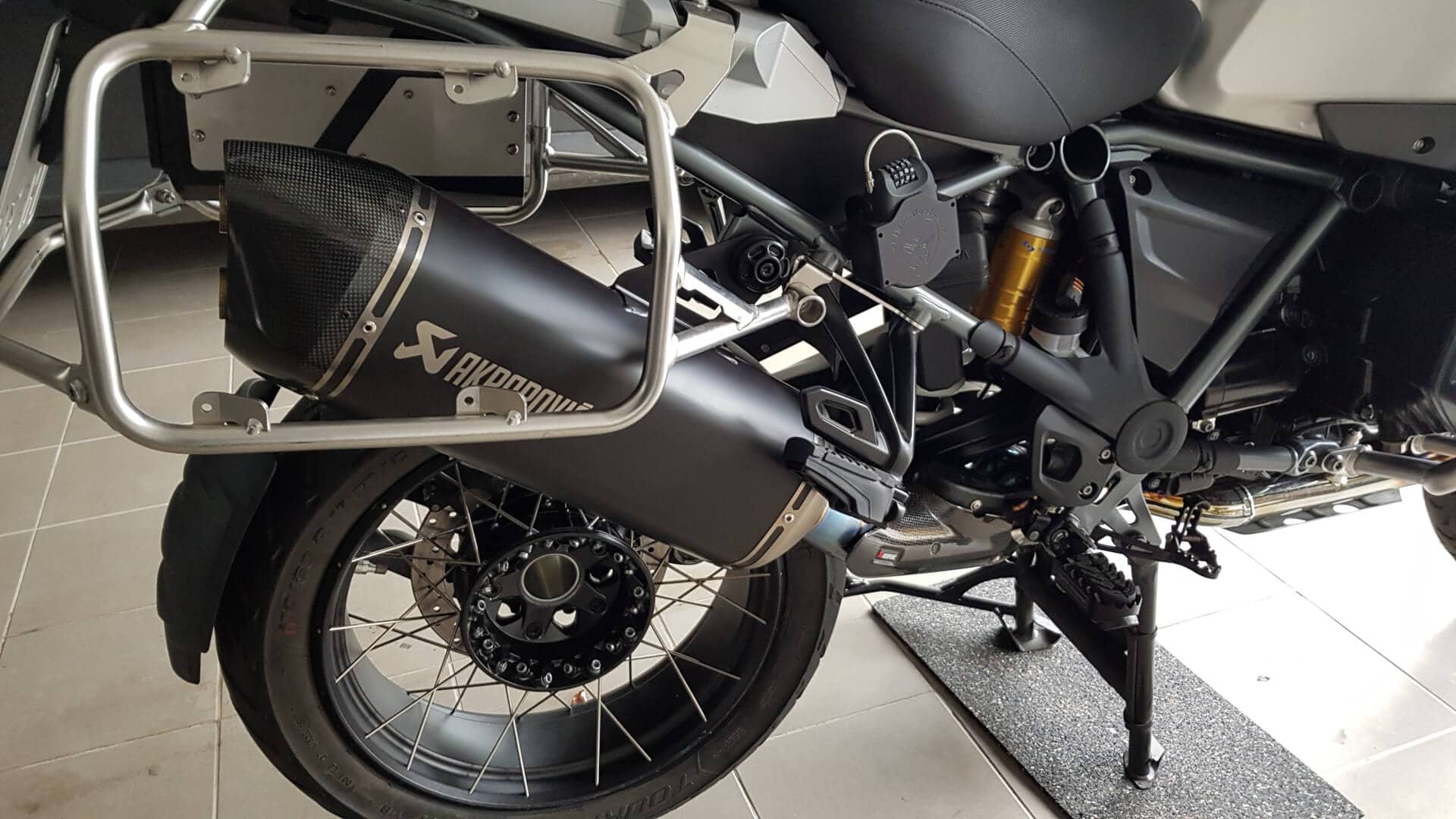 Den Akrapovic Endschalldämpfer habe ich wieder abgenommen. Die Lautstärke ab 4000 U/Min war mir einfach zu laut und besonders mit Koffern auf der Autobahn unerträglich. Der Serienauspuff ist dagegen fast schon ein Genuss.