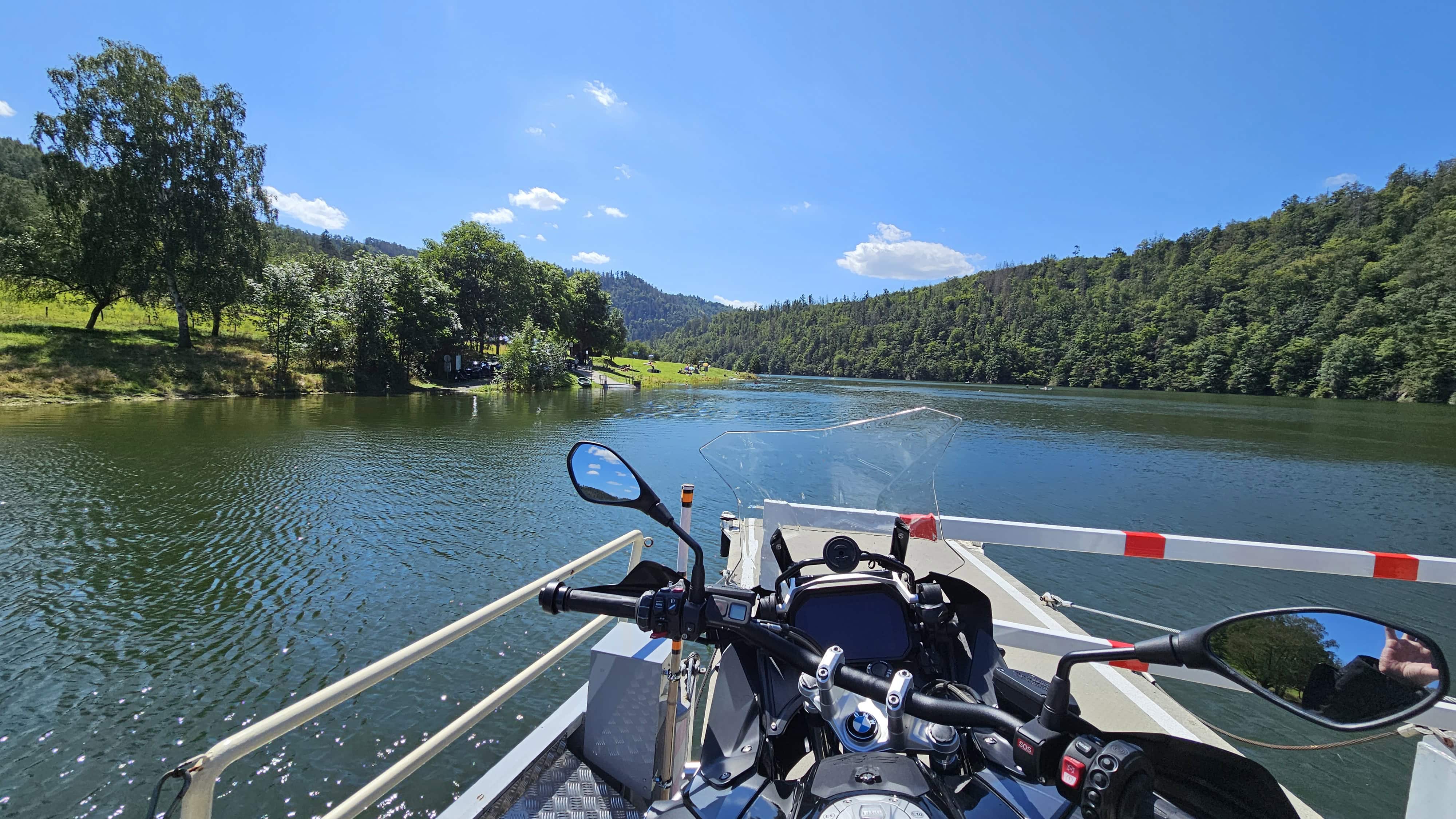 In wenigen Minuten ist meine BMW verladen und ich sitze gemütlich im Crafter auf dem Weg nach Hamburg. Dabei beschließe ich über den Harz zu fahren, besorge kurz Kuchen bei einem noch geöffneten Bäcker und halte südlich von Stollberg zur abendlichen Kaffeepause an einem kleinen See.