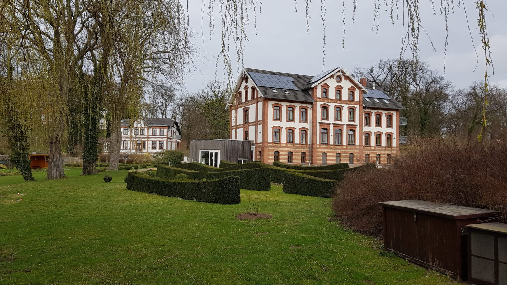 Am nächsten Morgen geht es dann gemütlich irgendwann zum Frühstück, das mit einer leckeren und ausreichend großen Auswahl überzeugt. Weil ich nicht Hals über Kopf aufbrechen will, drehe ich noch eine Runde durch den Schaugarten des Hotels. Hier blüht es schon in einigen Ecken und der Ausblick auf das Hotel und den See gefallen mir. Die frische Luft nach dem Frühstück tun mir gut. Jetzt bekomme ich richtig Lust auf die Strecke, die vor mir liegt. Dennoch tritt man den Rückweg ja immer mit einem weinenden Auge an, denn das bedeutet das Motorrad muss erstmal wieder in die Garage und der Kurzurlaub ist vorbei.