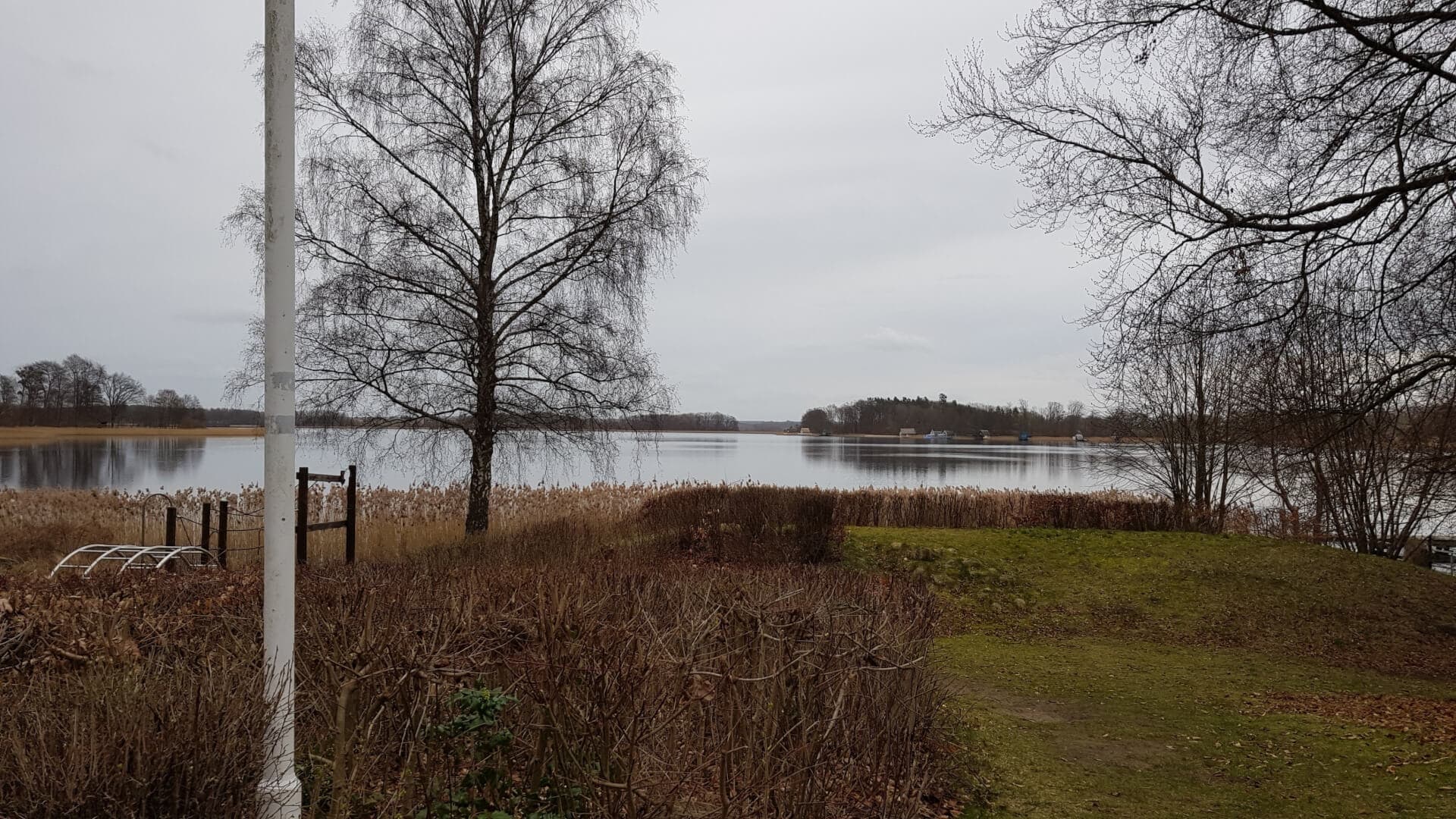 Das Wetter ist mittelprächtig, aber die Tour wird jetzt durchgezogen. Möglichst schnell geht es zunächst aus Hamburg raus und über Bargteheide dann Richtung Osten. Mit der Kurviger.de App habe ich versucht eine möglichst kurvige Strecke zu basteln und so schlängeln sich die Landstraßen mal mehr mal weniger durch nette Landschaften. Irgendwann komme ich am Schaalsee vorbei und bekomme Vorfreude auf die Mecklenburgische Seenplatte.