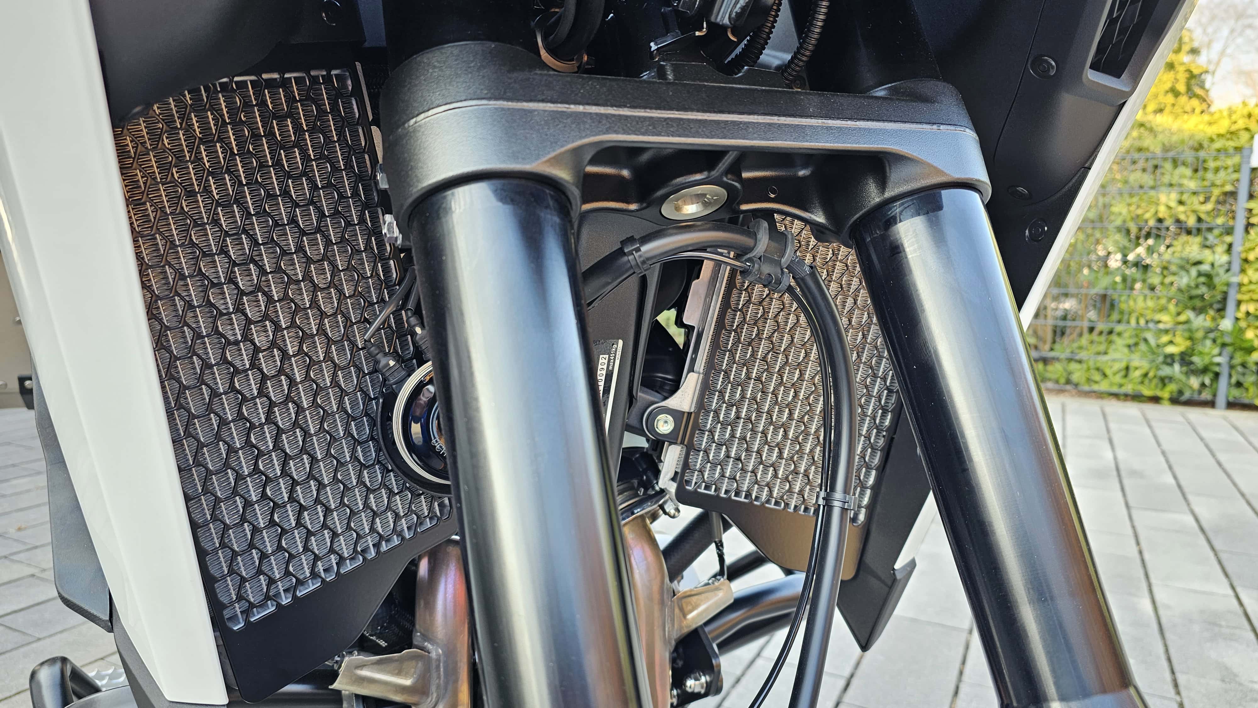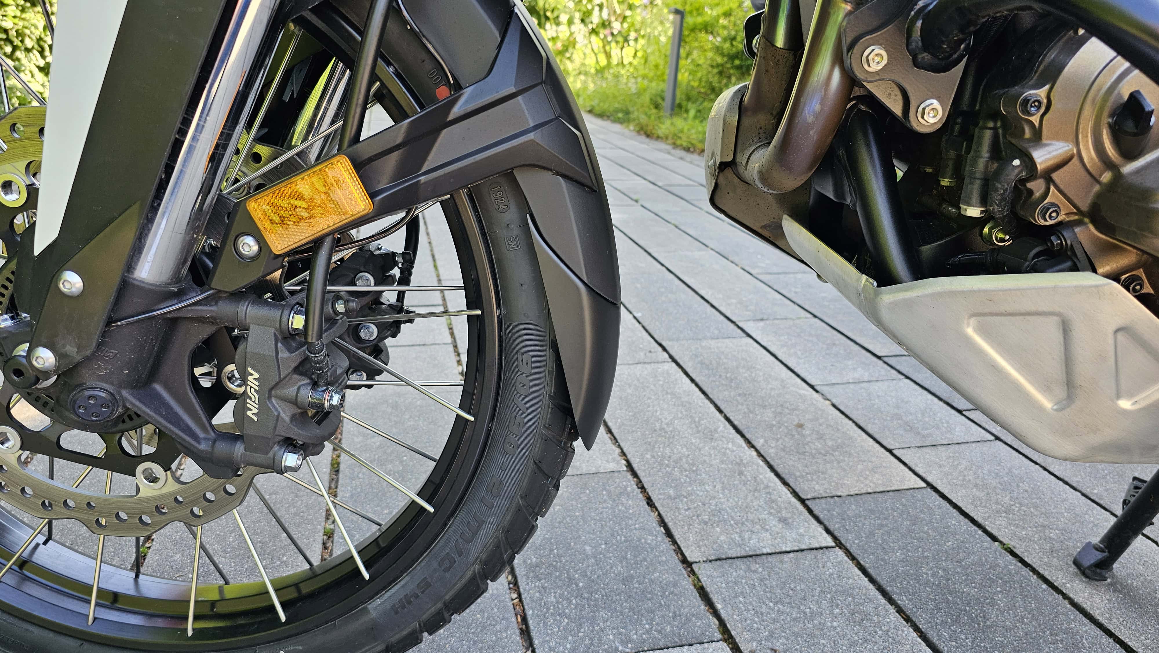 Wie bei viele Motorrädern ist der vordere Spritzschutz zu kurz. Hier gibt es eine Lösung von Puig.