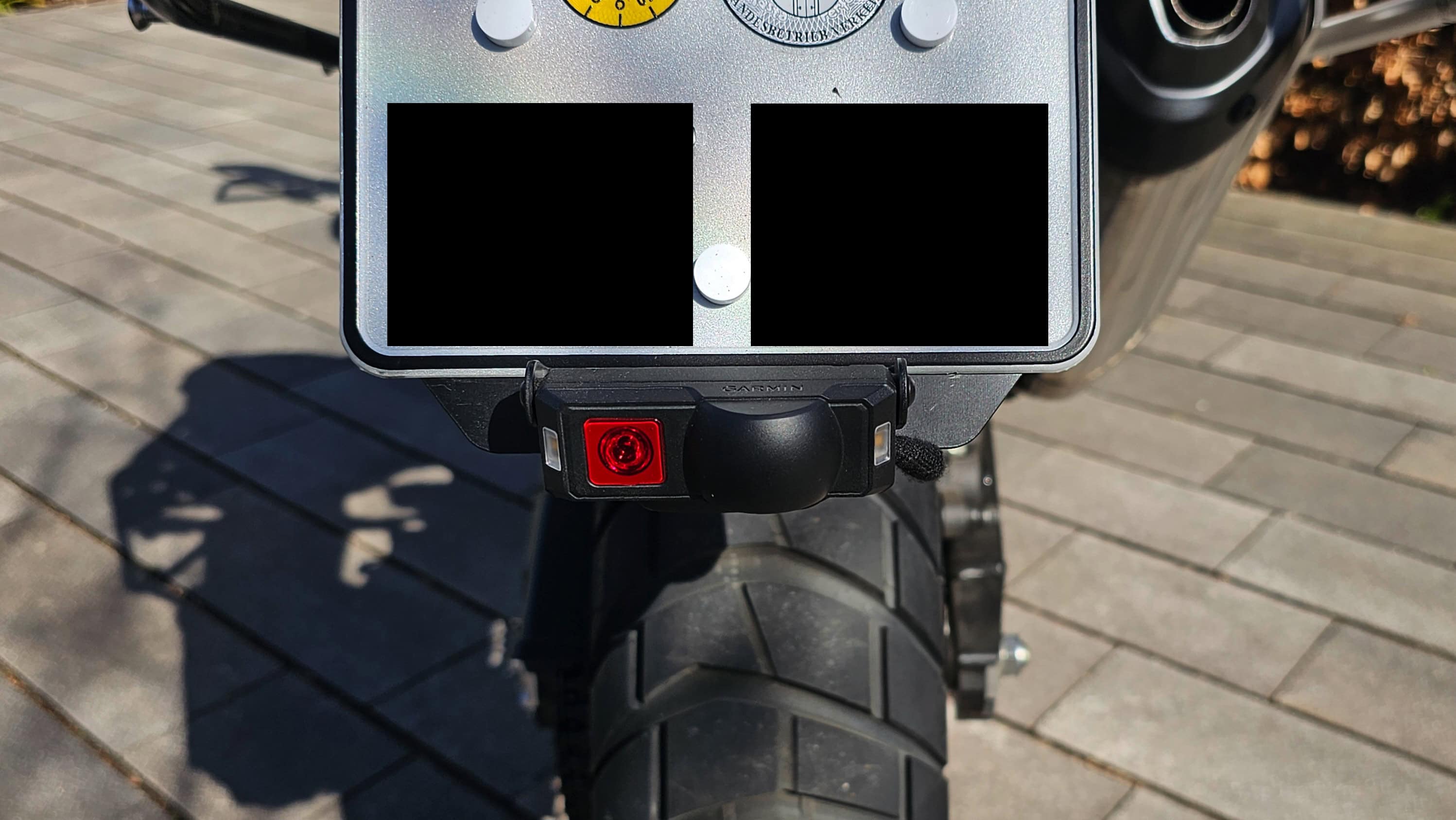 Garmin R1 Radar als Toter-Winkel-Warner. Die Warnung kann über eine App, den Zumo XT2 oder durch die LEDs erfolgen.