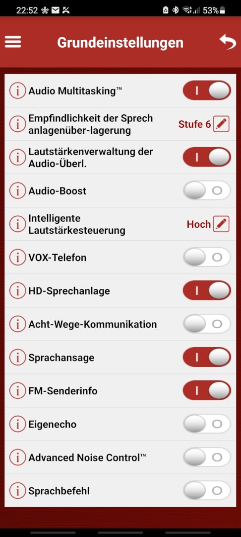 Man sollte allerdings Advanced Noise Control abschalten, da für den Gesprächspartner unangenehme Hintergrundgeräusche, wie ein „Rasseln“, entstehen. Durch das Abschalten werden die Umweltgeräusche etwas stärker aber ohne digitale Artefakte.