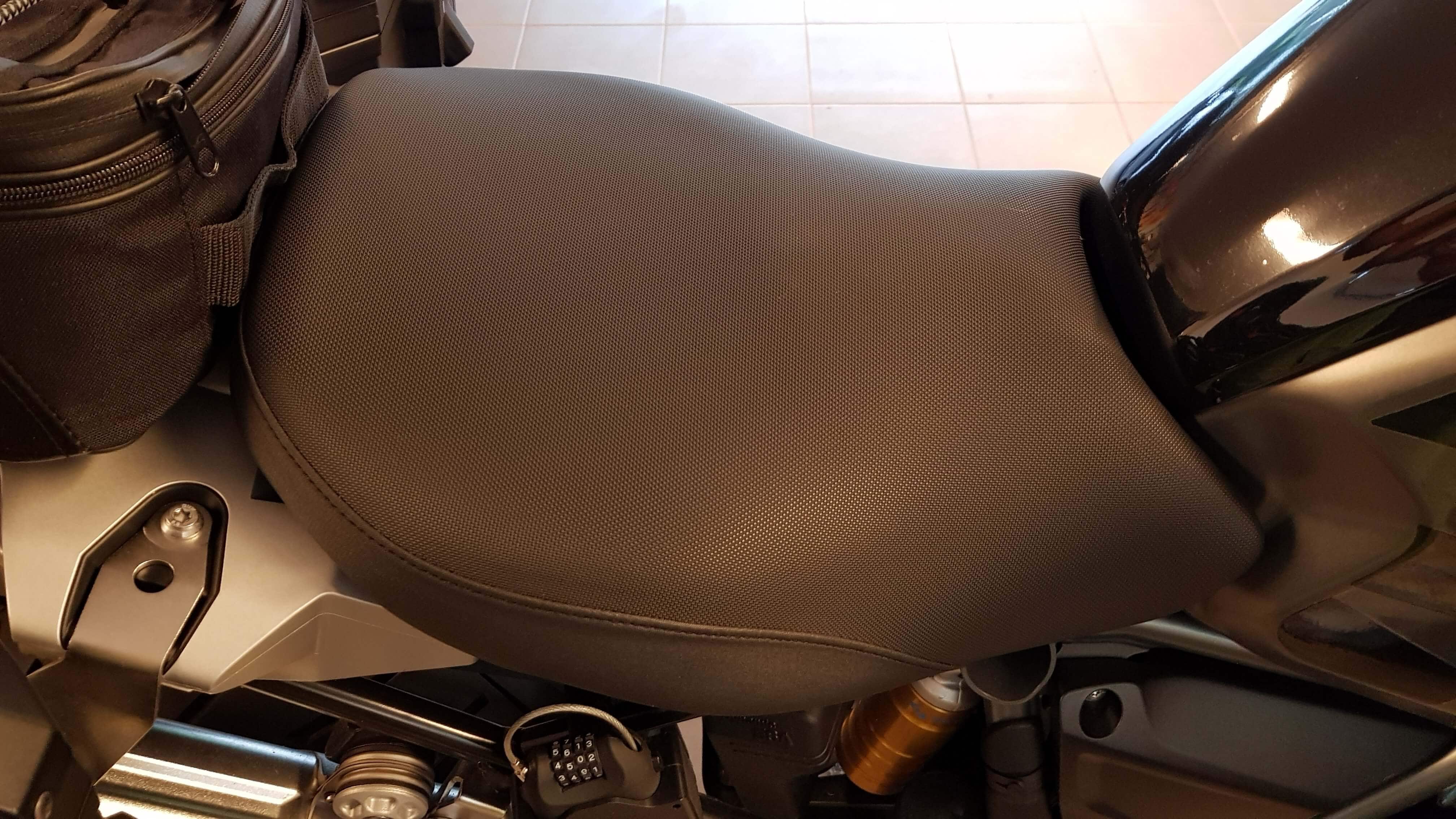 Im Vergleich zur BMW Polsterung, die viel zu weich ist und mir immer Schmerzen verursachte, ist die positive Änderung mit der neuen Sitzbank deutlich zu spüren.