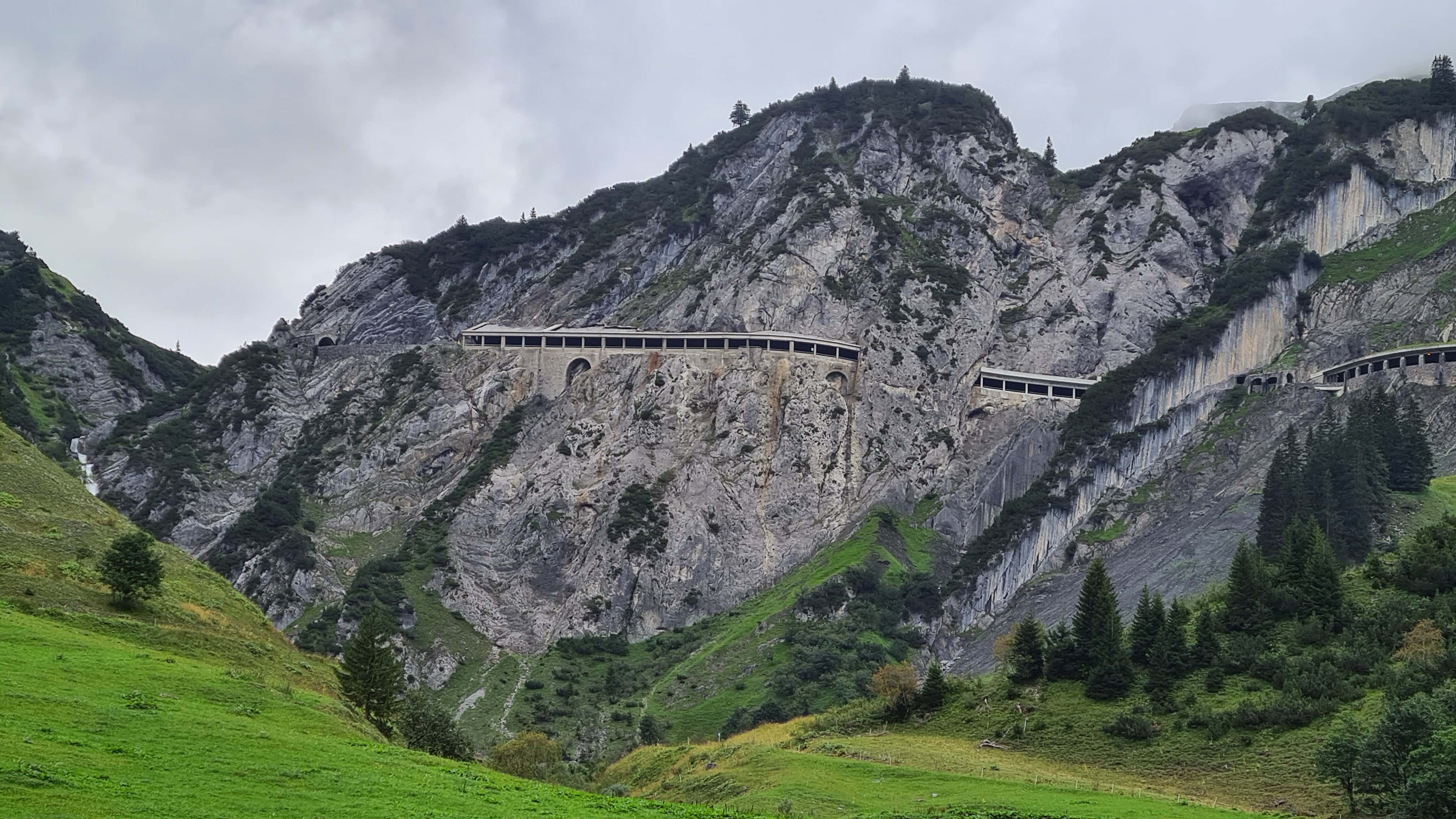 Vom Flexenpass fahre ich durch eine große Galerie Richtung Bieler Höhe.